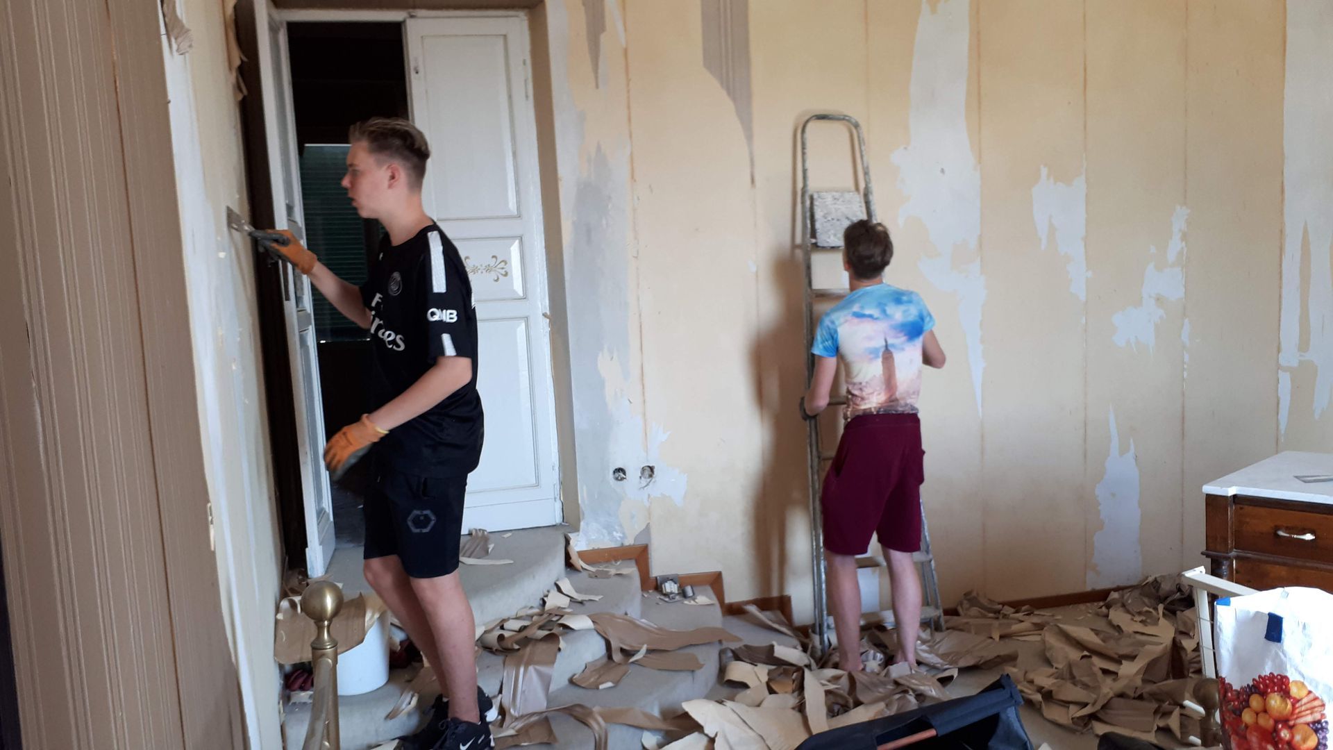 Misha en Carola komen ook nog tussendoor langs en Misha zorgt ervoor dat er een betonnen vloer wordt weg gesloopt. Samen met Carola zetten ze een bed op en hangen ze nog allerlei spullen op.