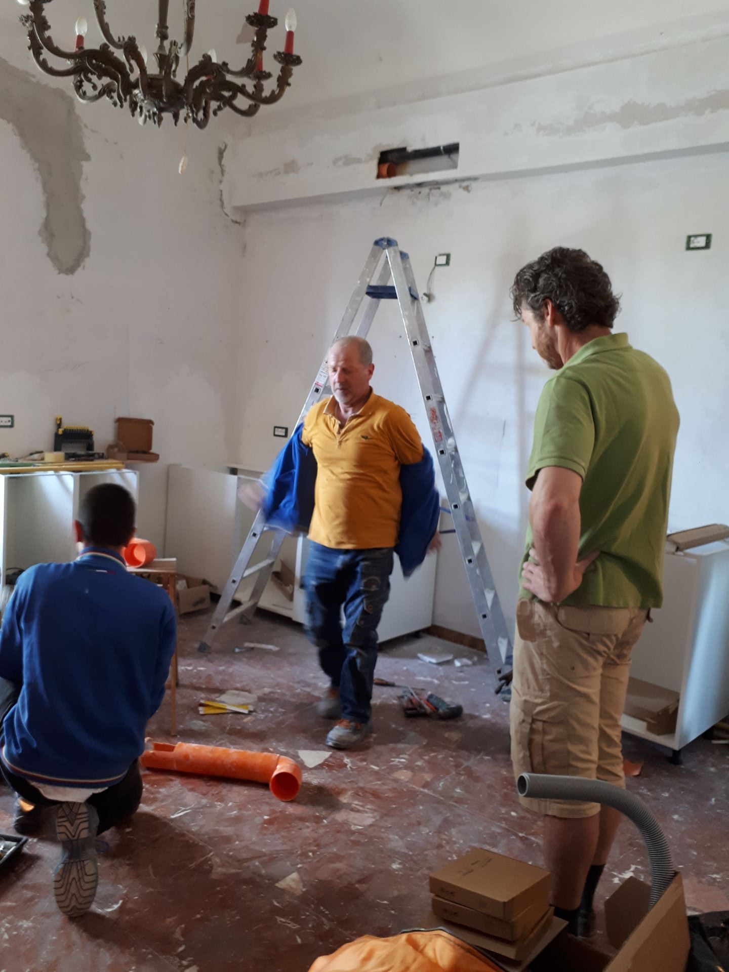 Met Paolo aan onze zijde vonden wij in mei 2018 uiteindelijk de 3 aannemers die ons huis wilden verbouwen. Wij wilden een huis met kamers om als B&B te kunnen verhuren. Dan ligt de lat gelijk hoog, want dan moet alles degelijk en goed zijn. Dus komen er nieuwe elektriciteits- en waterleidingen in, maar ook meteen airconditioning en als klap op de vuurpijl een nieuw dak.