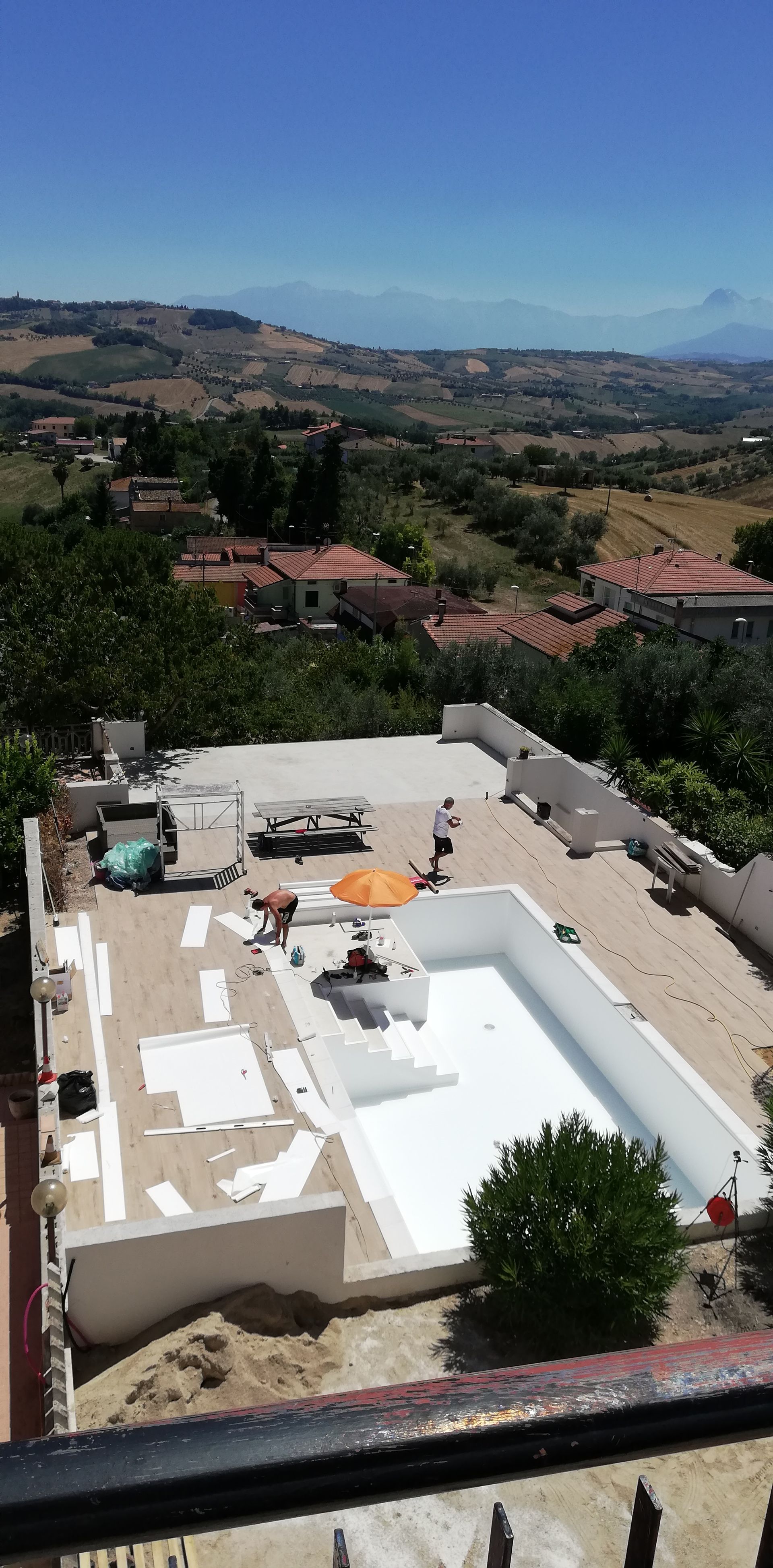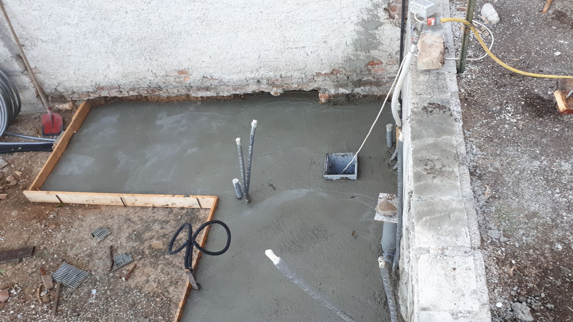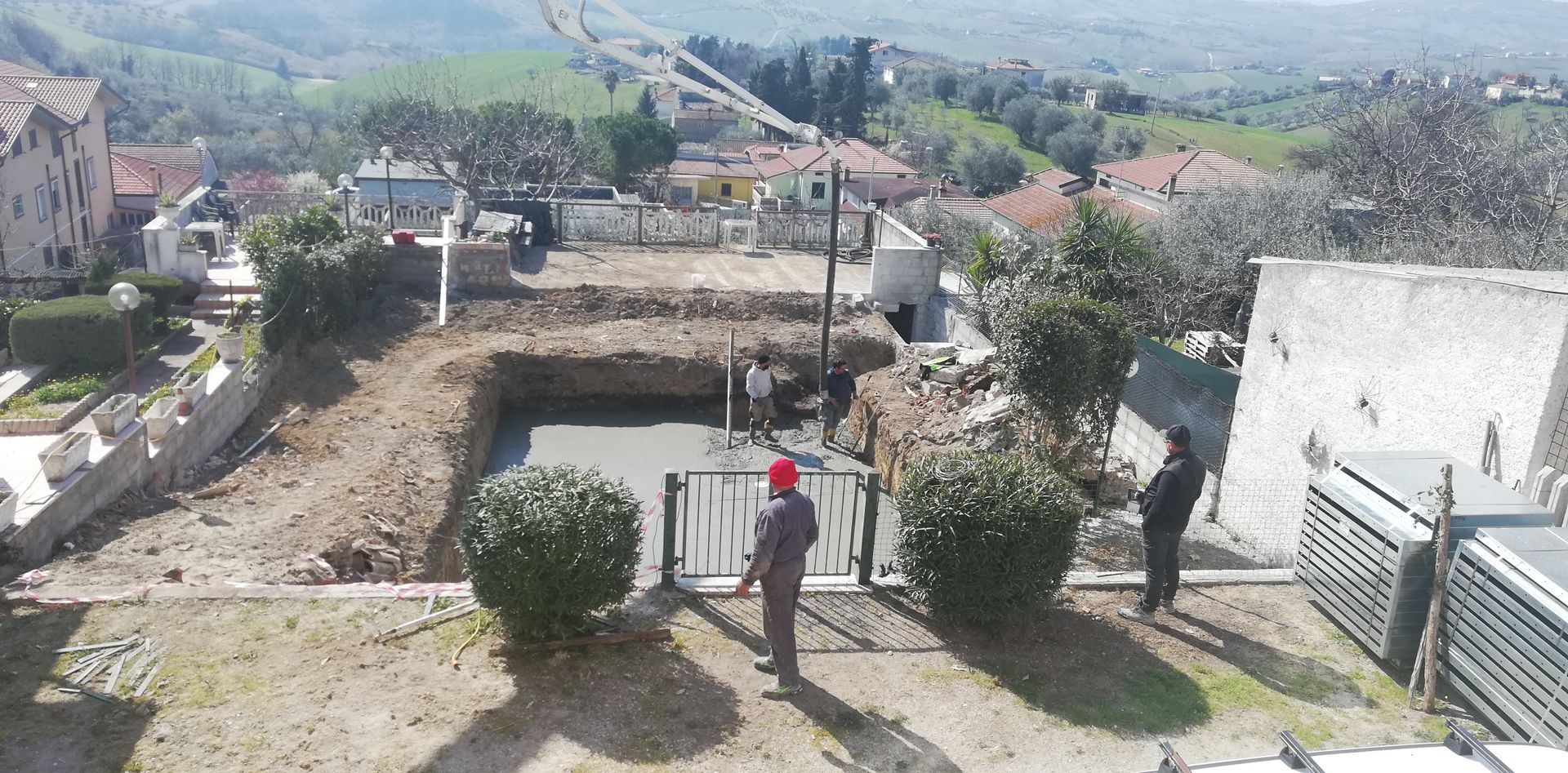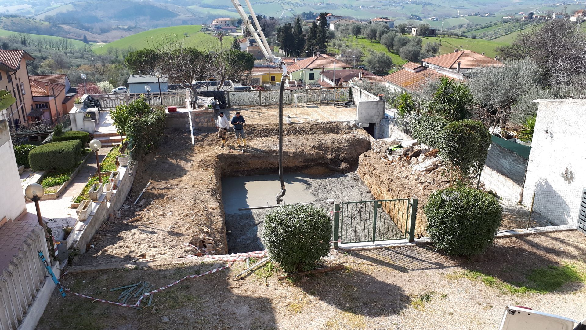 Kim en René hebben 7 weken verblijf in Italië geregeld, waarvan we een paar weken vrij zijn en een paar weken ook in Nederland gewerkt moet worden (online, het enige goede dat Corona heeft gebracht). De werkzaamheden starten halverwege maart, iets later dan verwacht. Het gat wordt gegraven en René plaatst de afvoerleidingen van het zwembad. De cementvloer wordt gestort en René kan het zwembad verder op gaan zetten. Samen met de aannemer, die er vaker niet is dan wel, wordt het leidingwerk in de grond gelegd en kan het grondwerk verder afgemaakt worden.