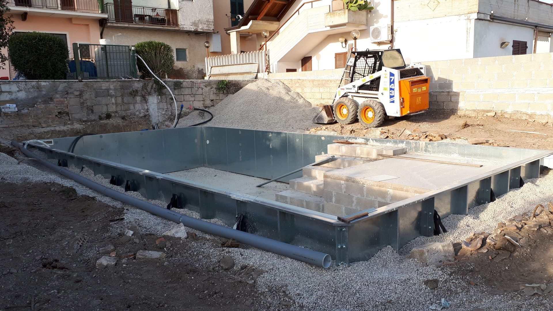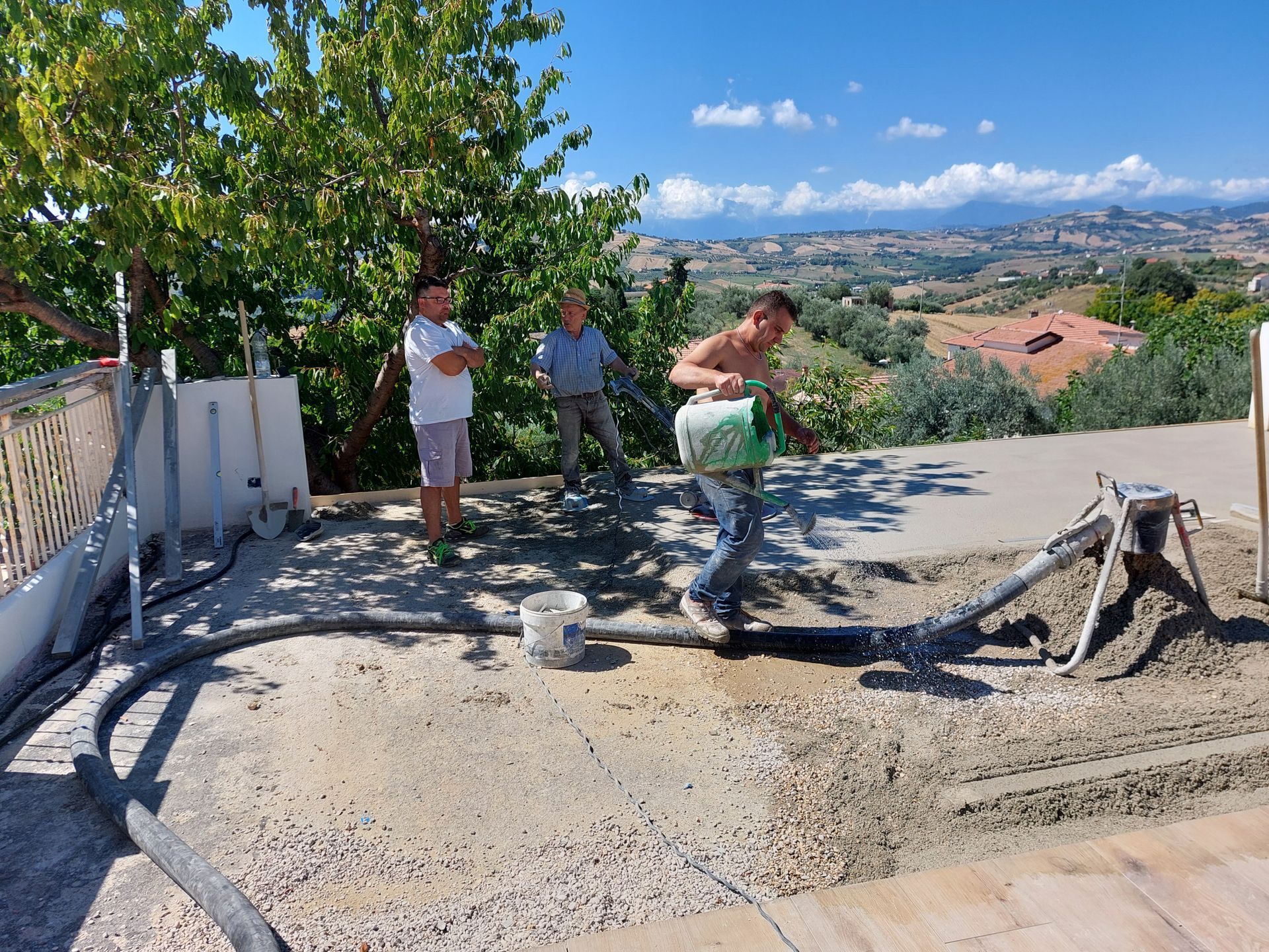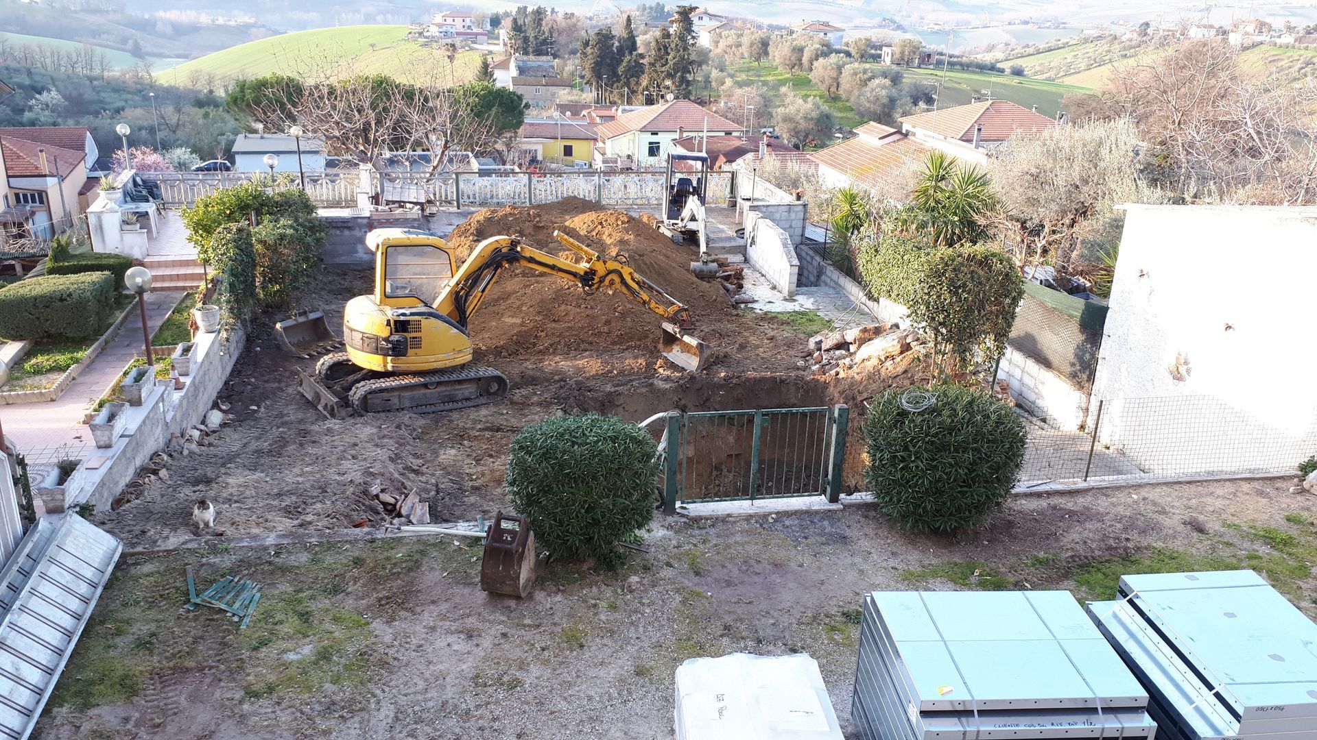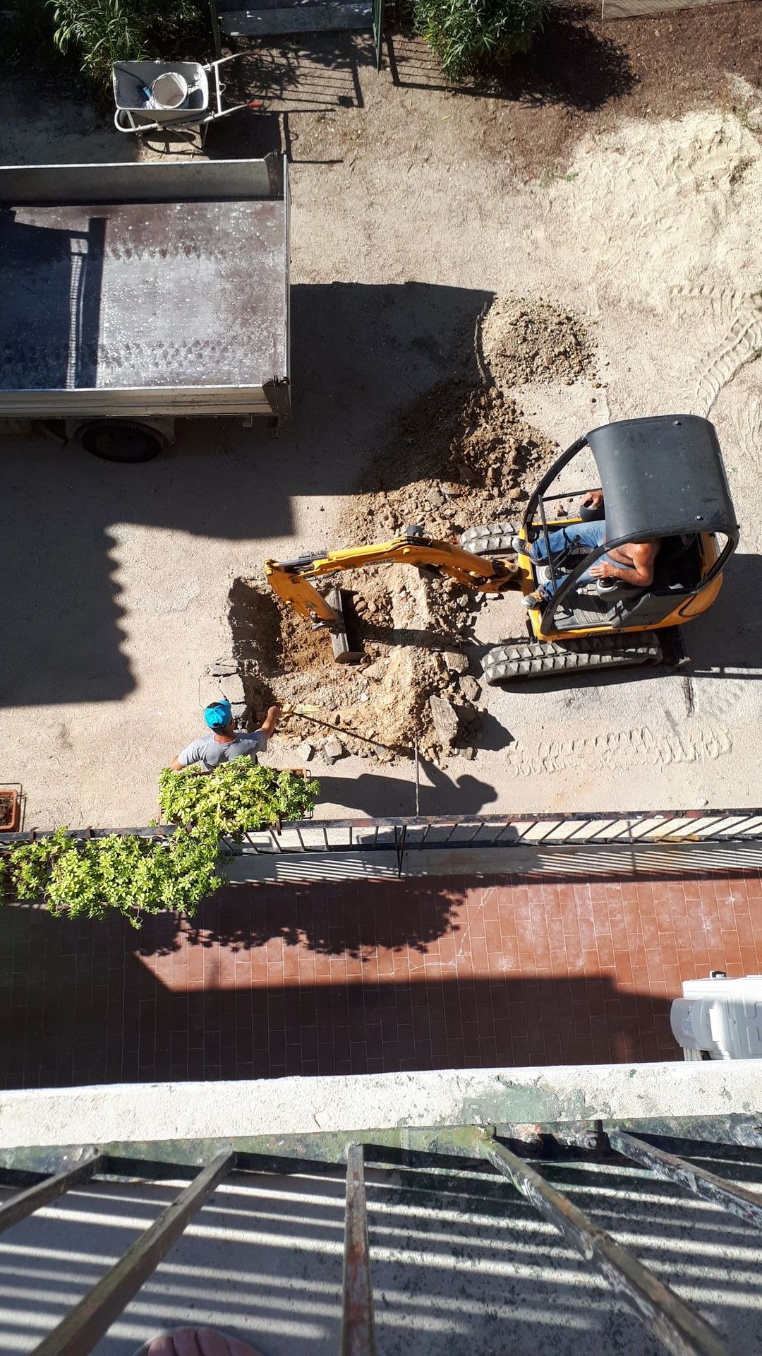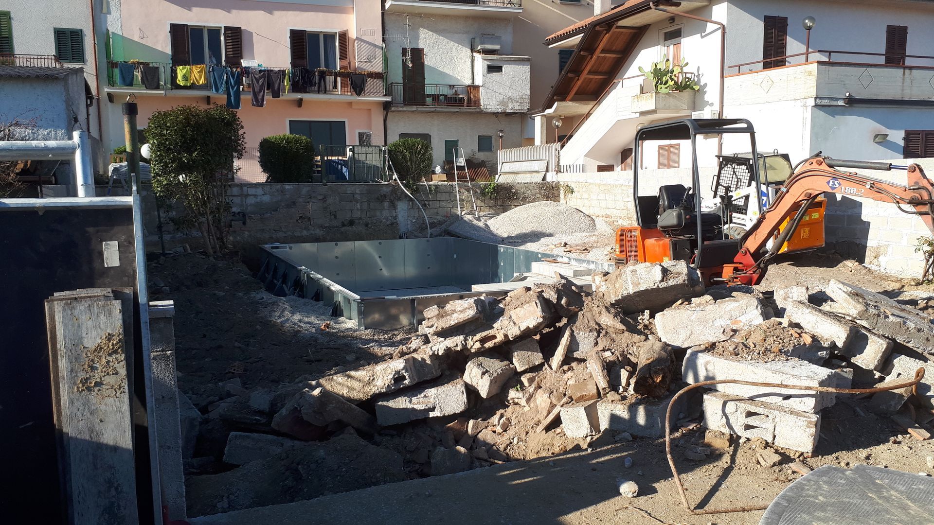 Kim en René hebben 7 weken verblijf in Italië geregeld, waarvan we een paar weken vrij zijn en een paar weken ook in Nederland gewerkt moet worden (online, het enige goede dat Corona heeft gebracht). De werkzaamheden starten halverwege maart, iets later dan verwacht. Het gat wordt gegraven en René plaatst de afvoerleidingen van het zwembad. De cementvloer wordt gestort en René kan het zwembad verder op gaan zetten. Samen met de aannemer, die er vaker niet is dan wel, wordt het leidingwerk in de grond gelegd en kan het grondwerk verder afgemaakt worden.