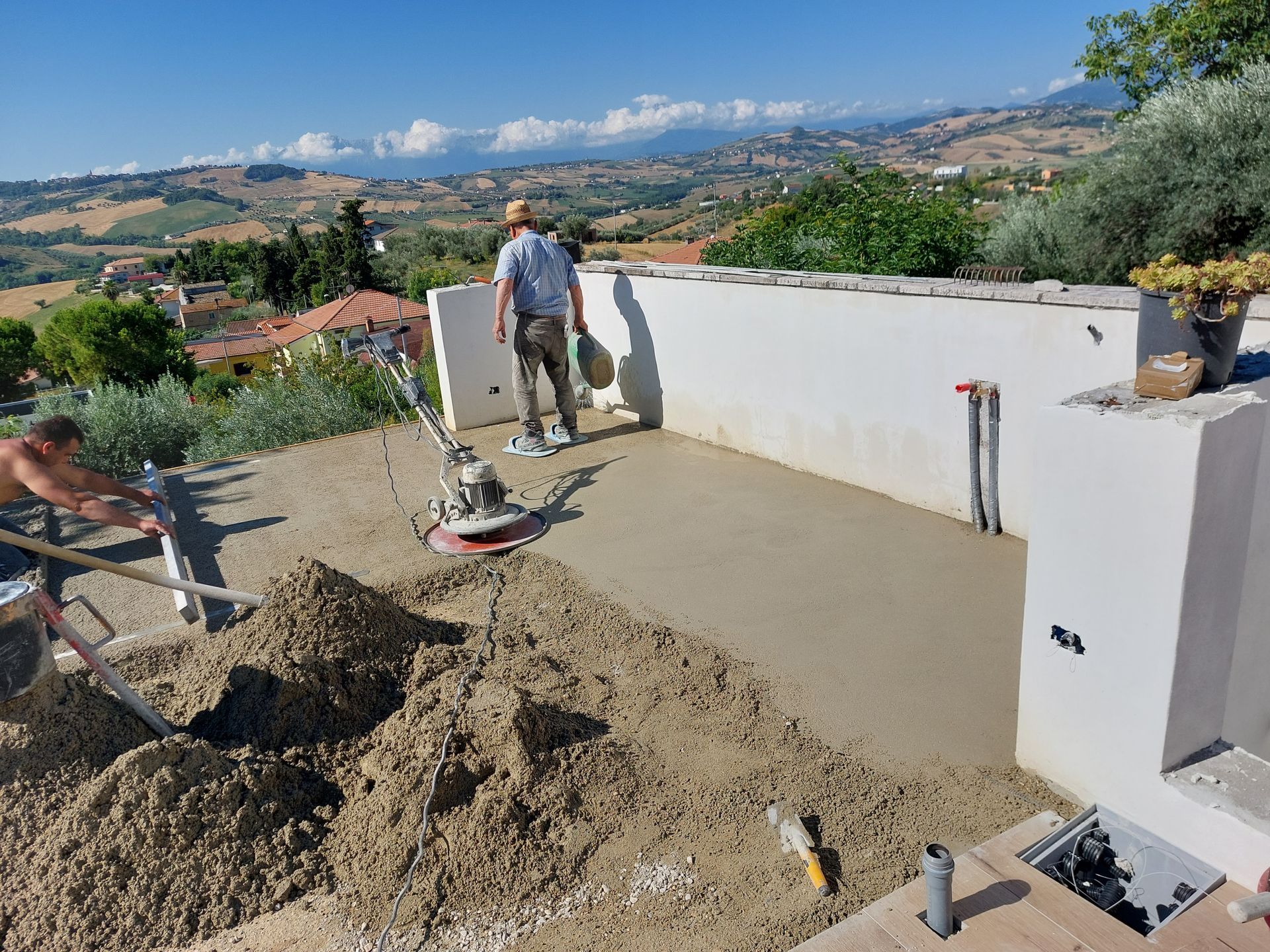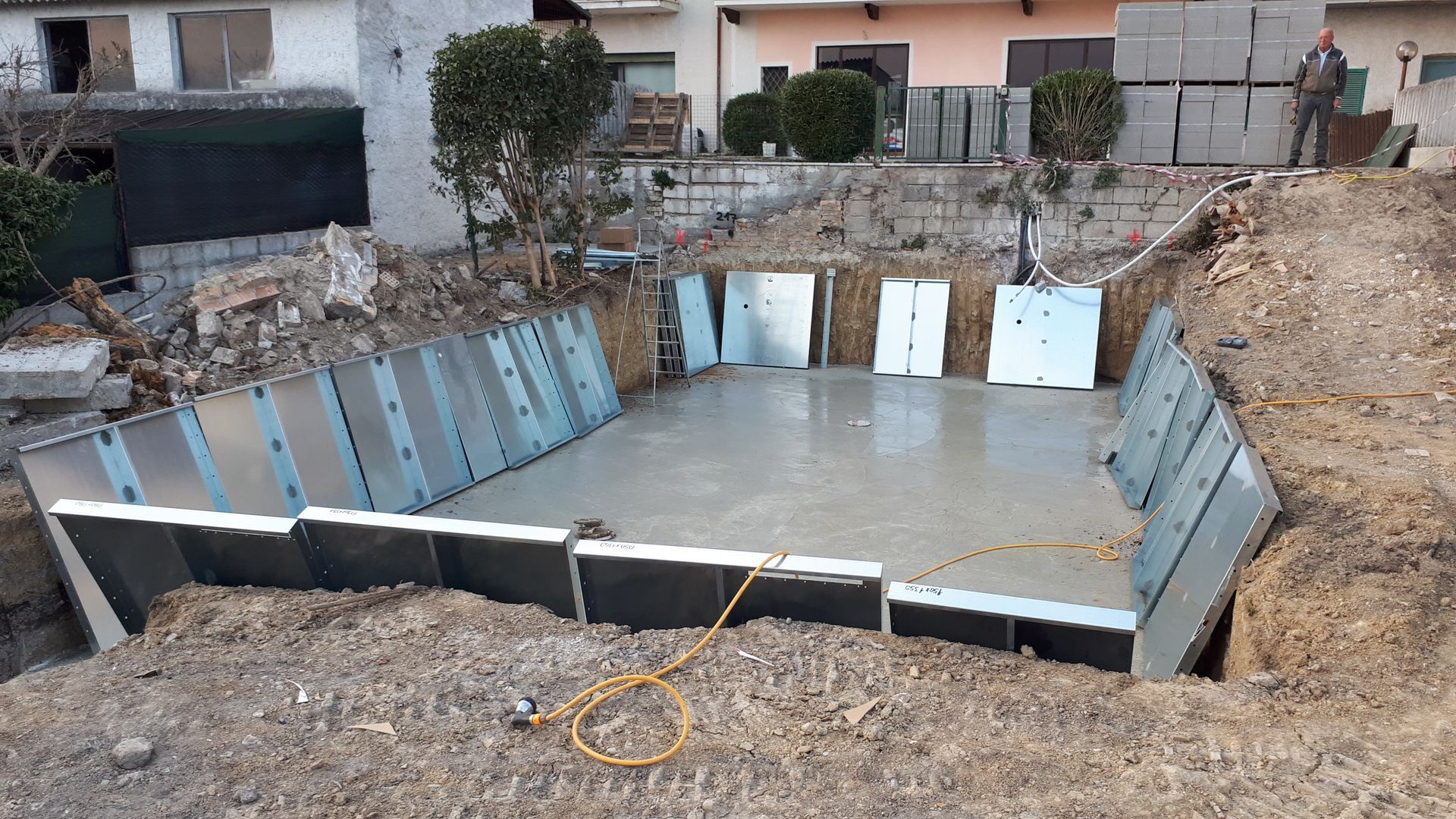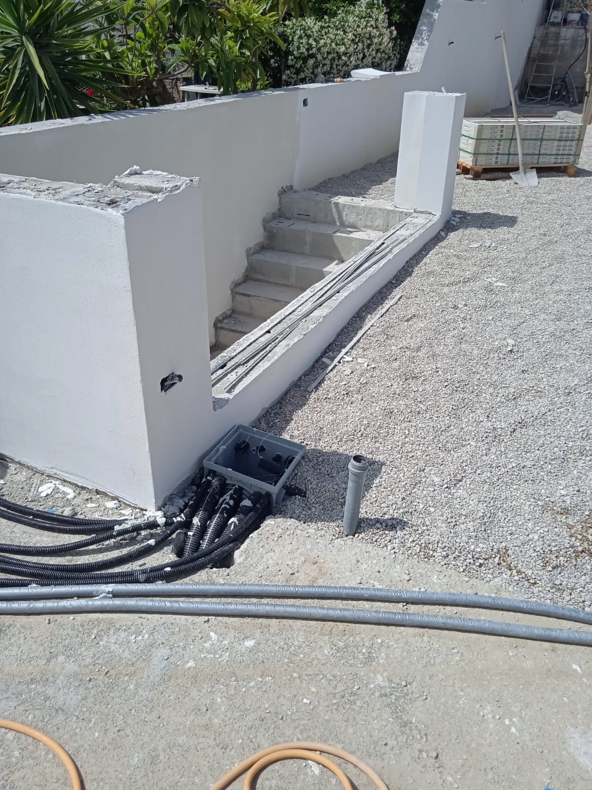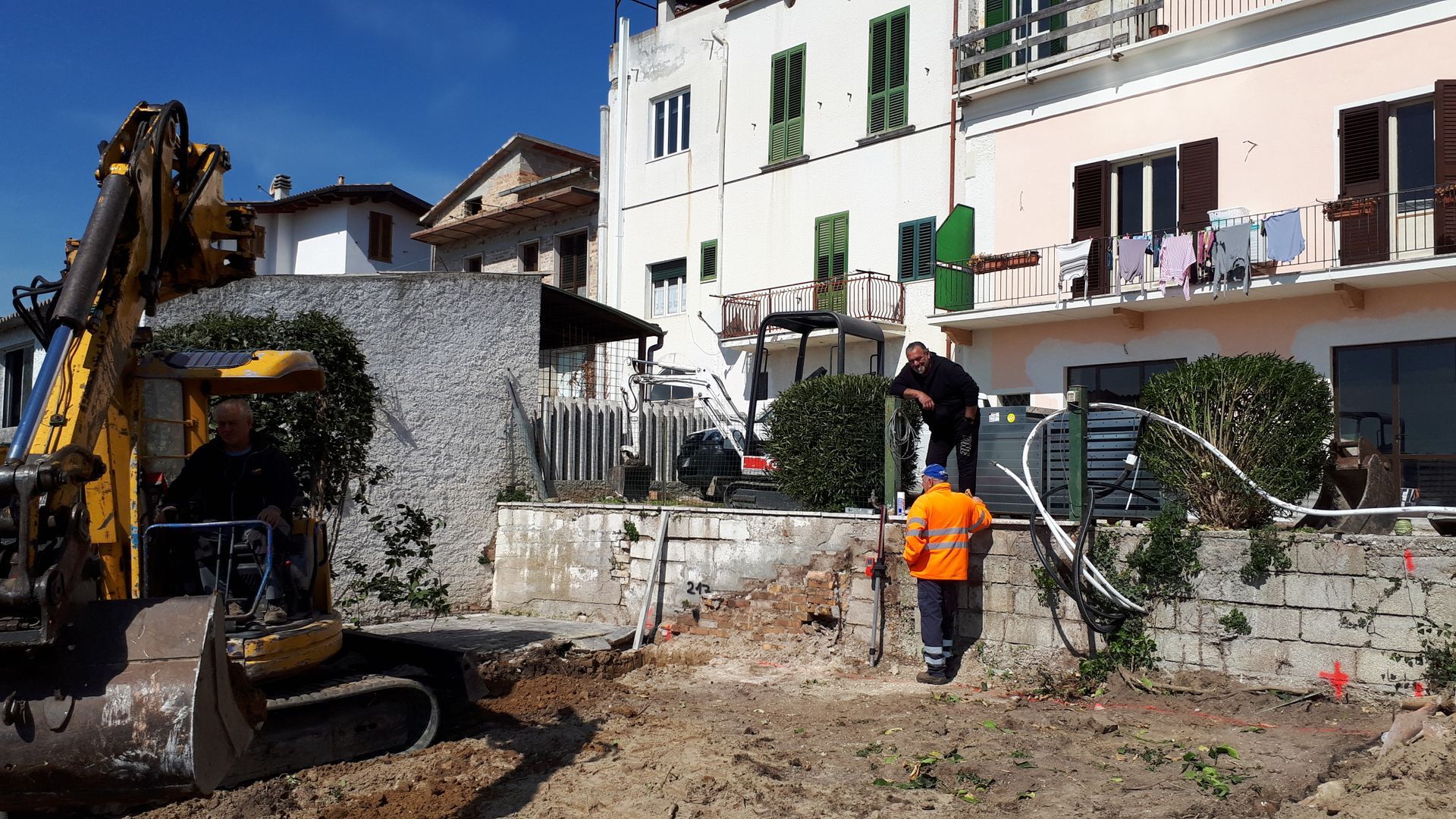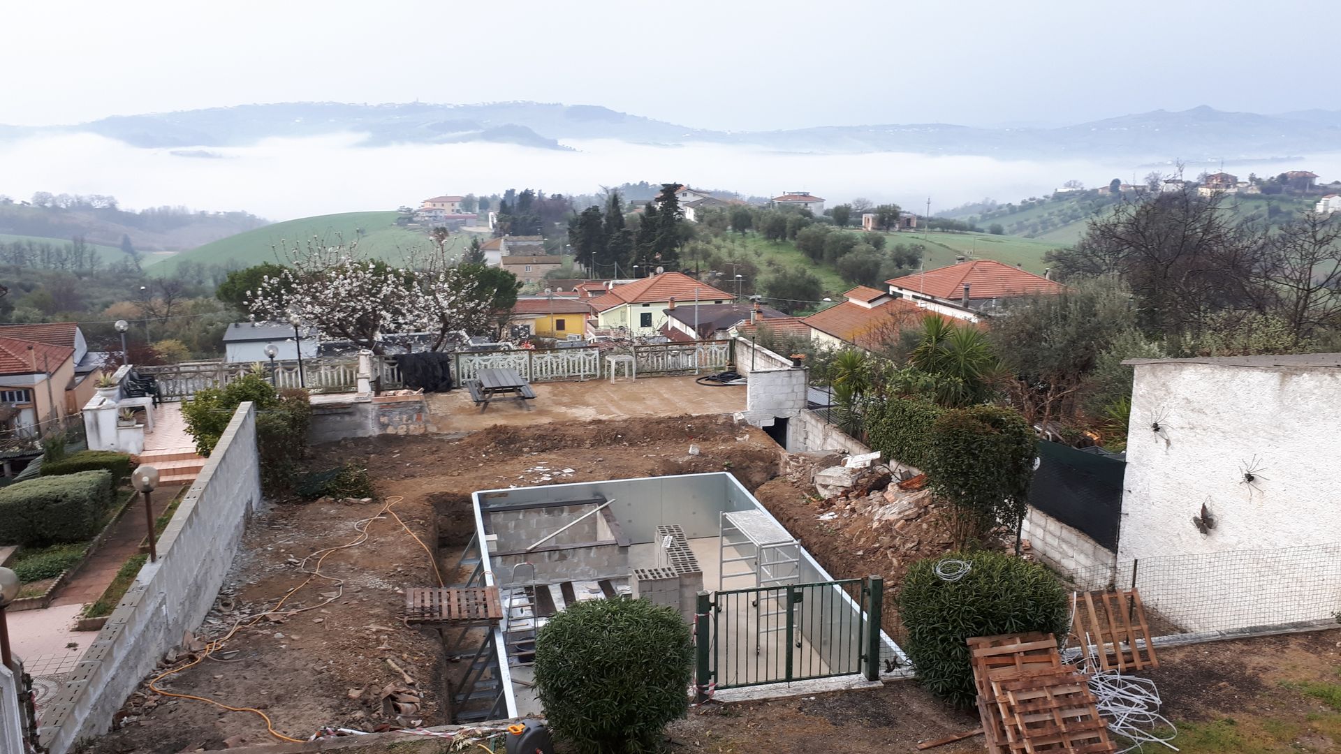 Kim en René hebben 7 weken verblijf in Italië geregeld, waarvan we een paar weken vrij zijn en een paar weken ook in Nederland gewerkt moet worden (online, het enige goede dat Corona heeft gebracht). De werkzaamheden starten halverwege maart, iets later dan verwacht. Het gat wordt gegraven en René plaatst de afvoerleidingen van het zwembad. De cementvloer wordt gestort en René kan het zwembad verder op gaan zetten. Samen met de aannemer, die er vaker niet is dan wel, wordt het leidingwerk in de grond gelegd en kan het grondwerk verder afgemaakt worden.