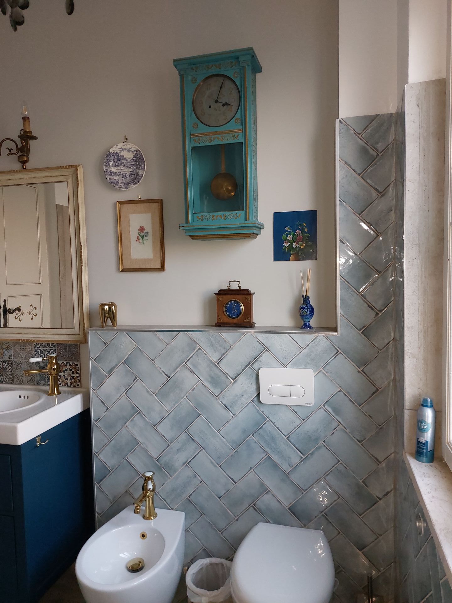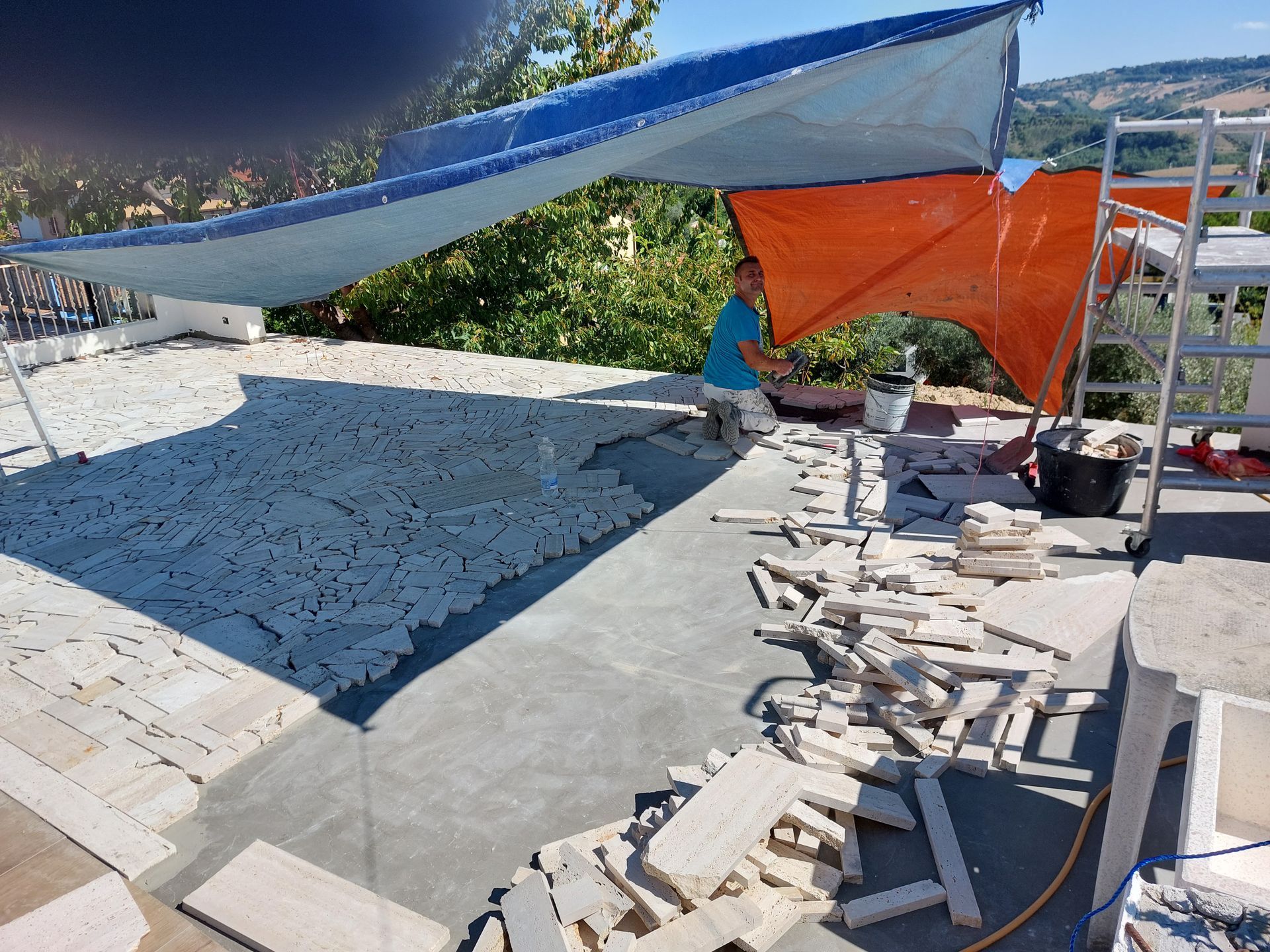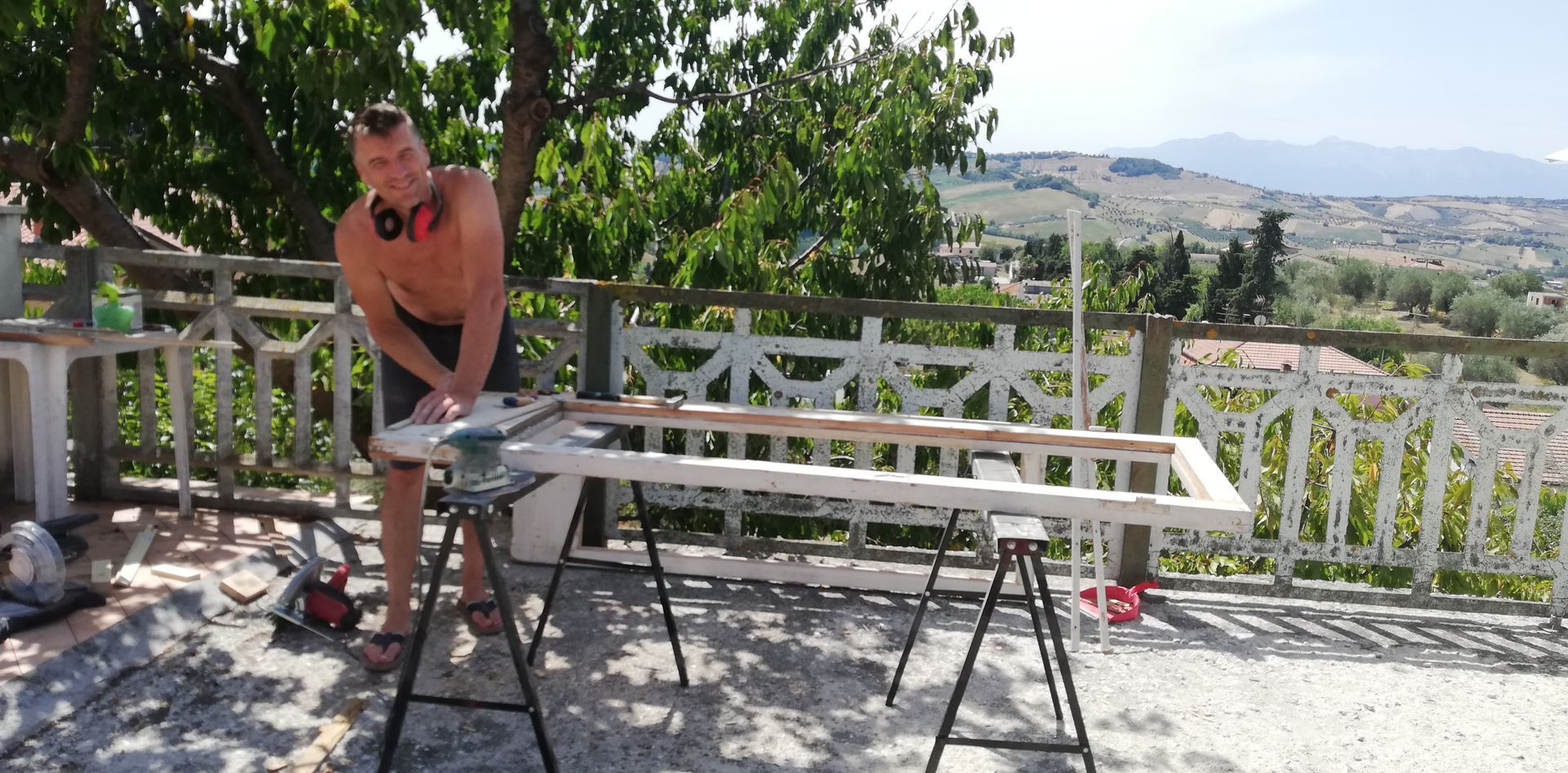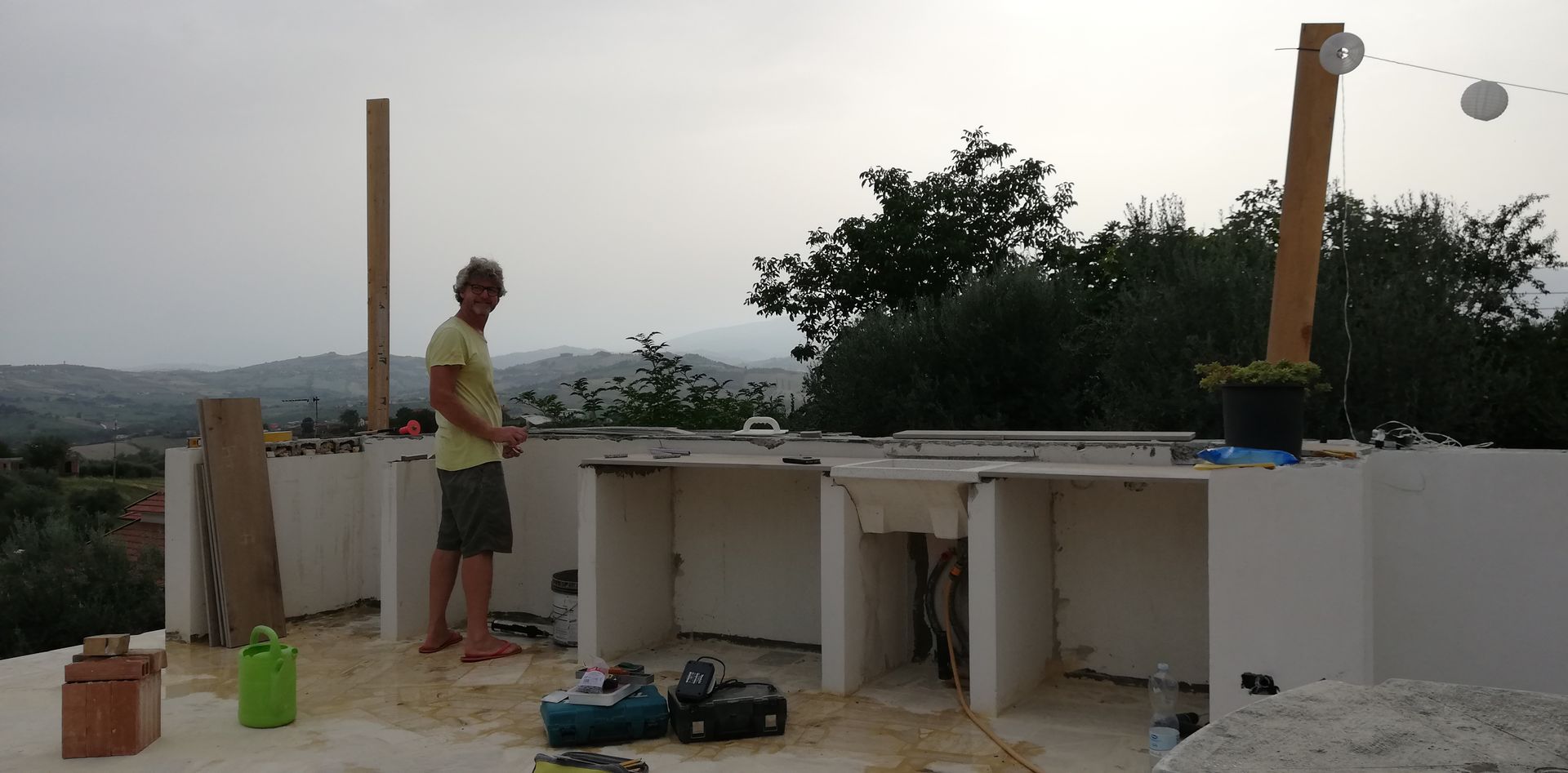 In de loop van 2021 pakken we de draad weer op en kunnen we toch weer vaker naar Italië. Mitik maakt het stucwerk af en zorgt ook dat het tegelwerk in de badkamers wordt afgemaakt en schildert ook even alle muren en plafonds in huis.