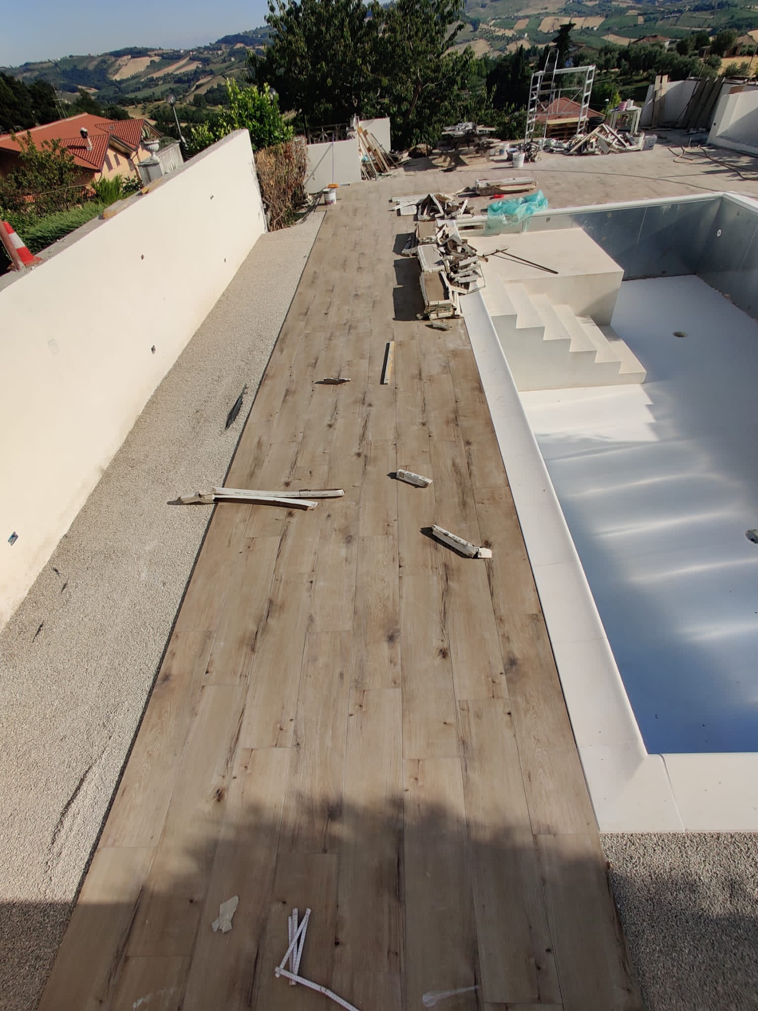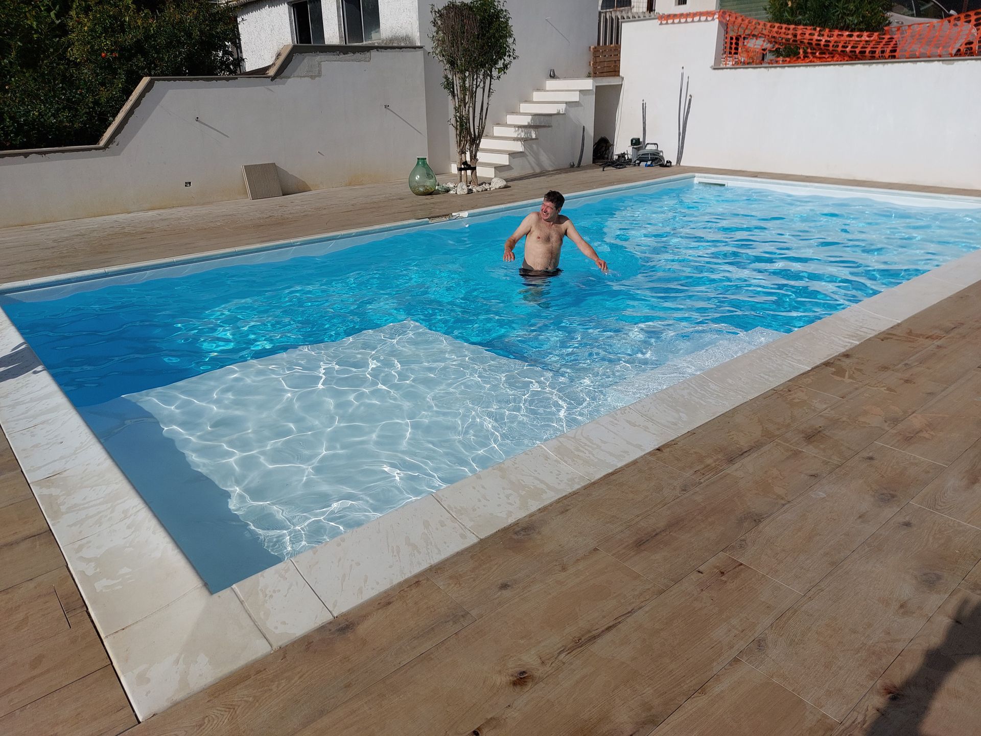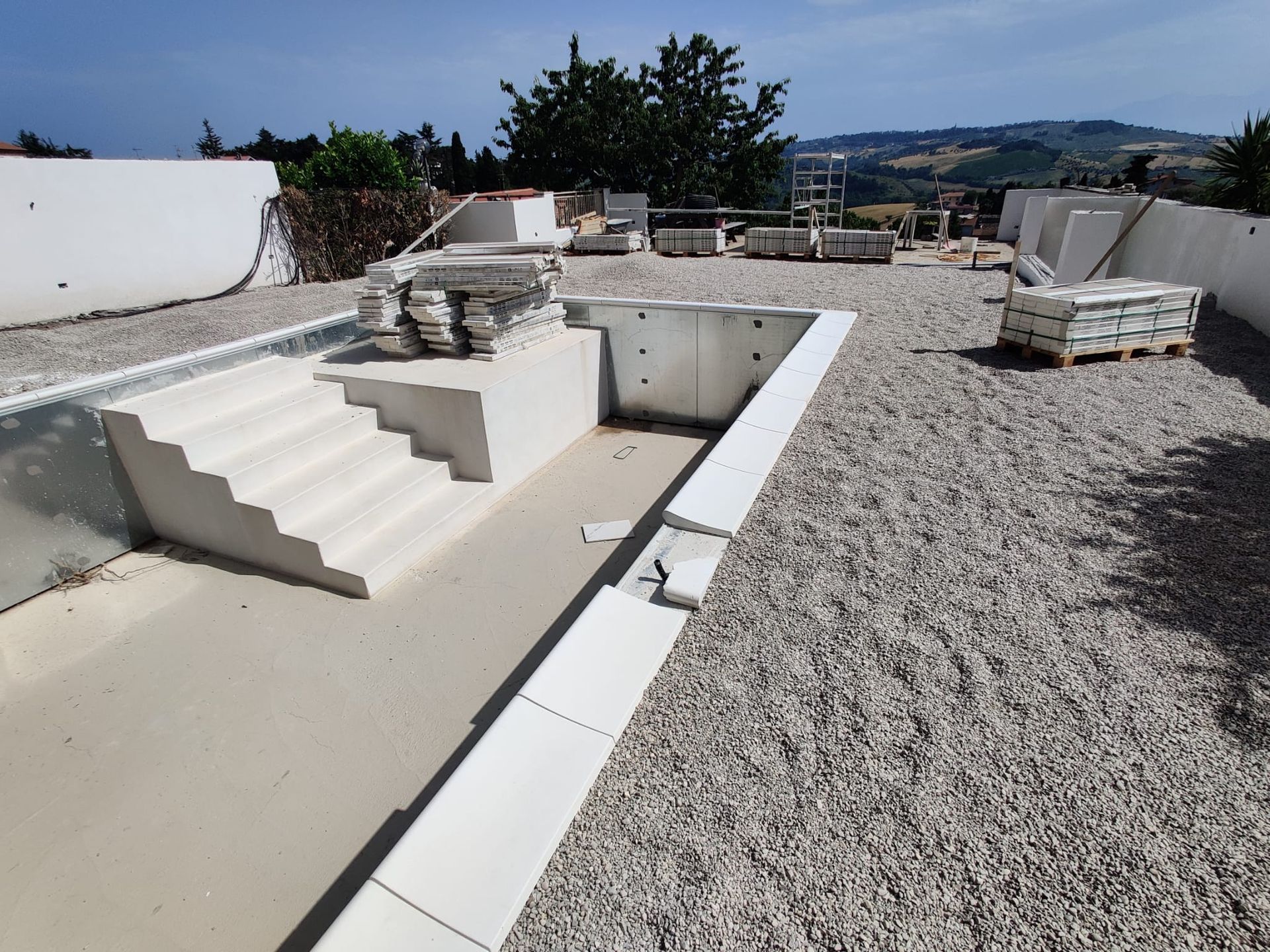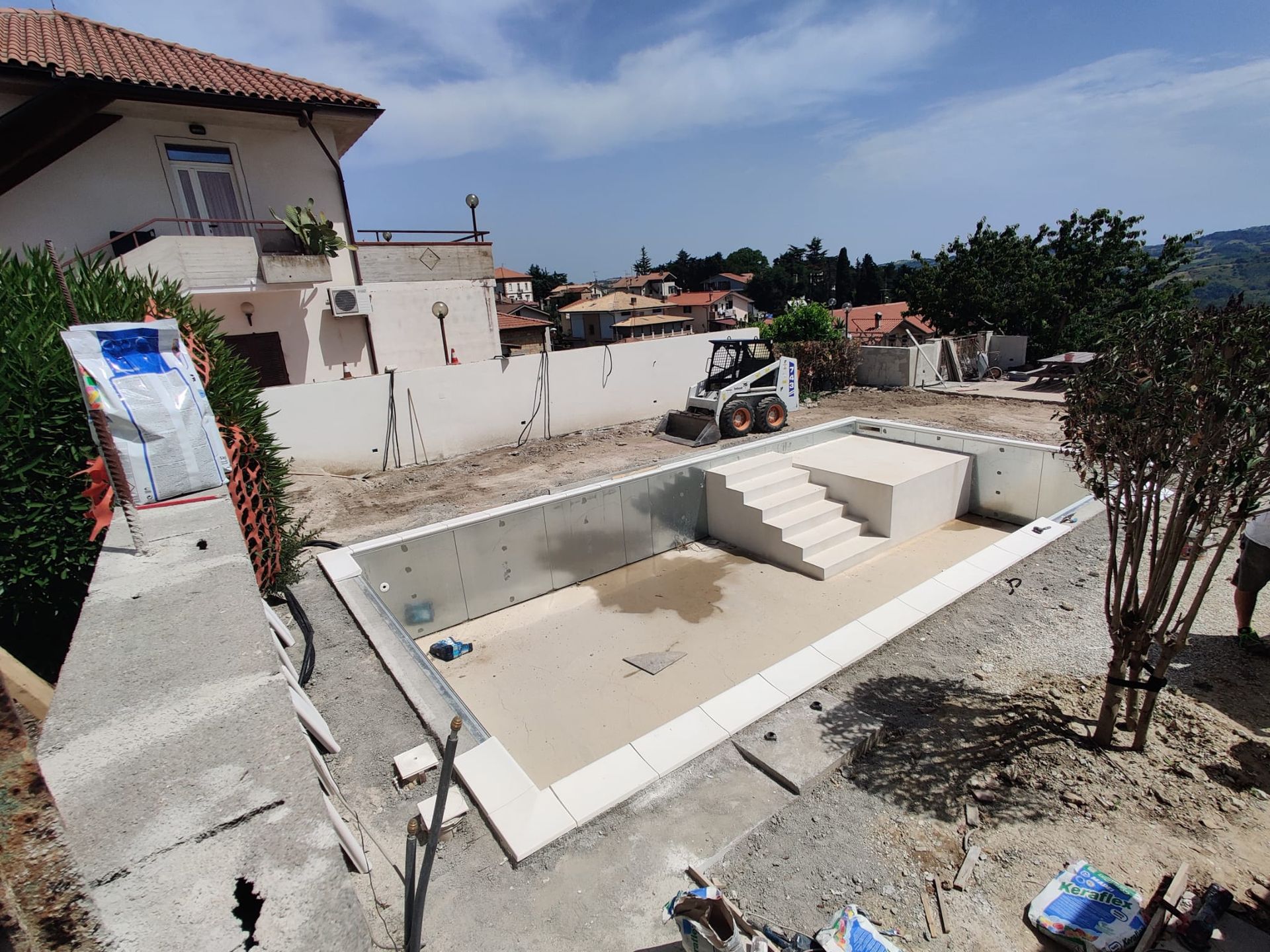 Eind april is nog niet al het werk klaar en gaan Kim en René terug naar Nederland en wordt de afspraak gemaakt dat het begin juni alsnog klaar is. Helaas gaat dat op z'n Italiaans mis en besluiten wij dat de totale oplevering wordt uitgesteld naar juli. Dan zijn wij weer voor 7 weken in Italië en kan René het verder afmaken met de man die de liner komt plaatsen. Het resultaat mag er zijn. Samen met Mitik worden vervolgens ook nog de muren van de tuin geplaatst, zodat de tuin weer veilig gemaakt kan gaan worden met het hekwerk in 2023.