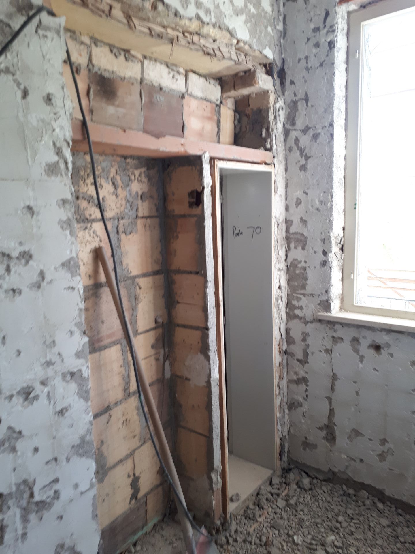 De aannemer moest nog een hoop doen en had daar nog tot na de zomer voor nodig om alles af te ronden. Het huis werd geschilderd, de ruwe badkamers waren opgeleverd, de deuren en muren zaten op de juiste plaats en de riolering was voorzien van putten, waardoor inspectie e.d. eenvoudiger te doen is. Nu was het verder aan ons om de afbouw te doen, maar wat moest er nog veel gebeuren. Alle muren moesten opnieuw worden gestuukt en de badkamers nog betegeld en afgebouwd worden op de 2e verdieping. Het binnen schilderwerk, meubels opknappen..... 😅