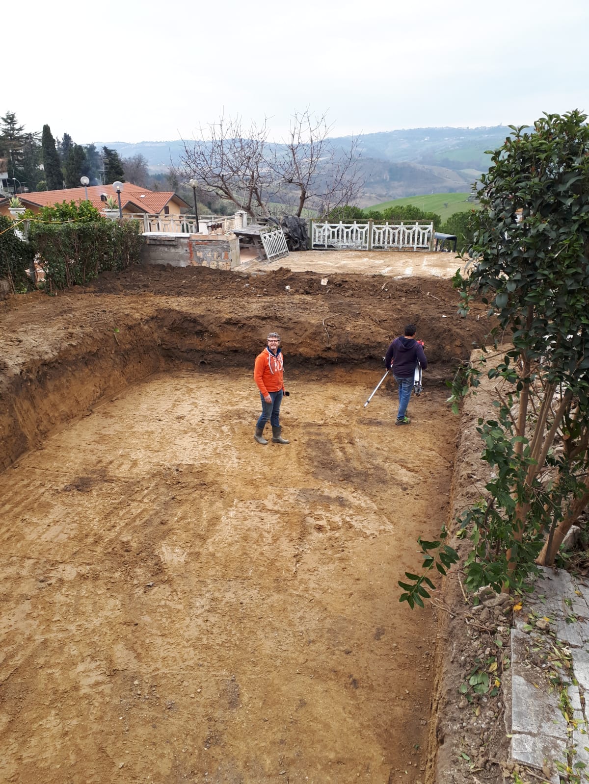 Kim en René hebben 7 weken verblijf in Italië geregeld, waarvan we een paar weken vrij zijn en een paar weken ook in Nederland gewerkt moet worden (online, het enige goede dat Corona heeft gebracht). De werkzaamheden starten halverwege maart, iets later dan verwacht. Het gat wordt gegraven en René plaatst de afvoerleidingen van het zwembad. De cementvloer wordt gestort en René kan het zwembad verder op gaan zetten. Samen met de aannemer, die er vaker niet is dan wel, wordt het leidingwerk in de grond gelegd en kan het grondwerk verder afgemaakt worden.