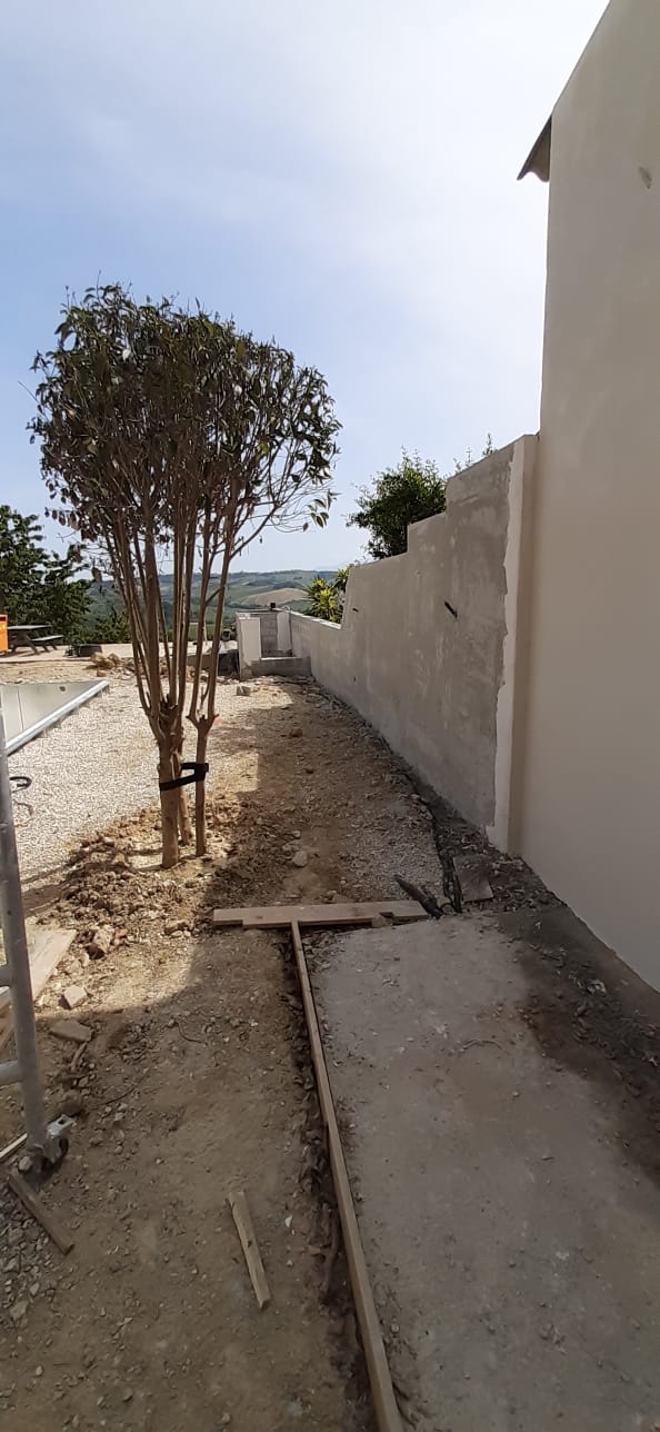 Eind april is nog niet al het werk klaar en gaan Kim en René terug naar Nederland en wordt de afspraak gemaakt dat het begin juni alsnog klaar is. Helaas gaat dat op z'n Italiaans mis en besluiten wij dat de totale oplevering wordt uitgesteld naar juli. Dan zijn wij weer voor 7 weken in Italië en kan René het verder afmaken met de man die de liner komt plaatsen. Het resultaat mag er zijn. Samen met Mitik worden vervolgens ook nog de muren van de tuin geplaatst, zodat de tuin weer veilig gemaakt kan gaan worden met het hekwerk in 2023.
