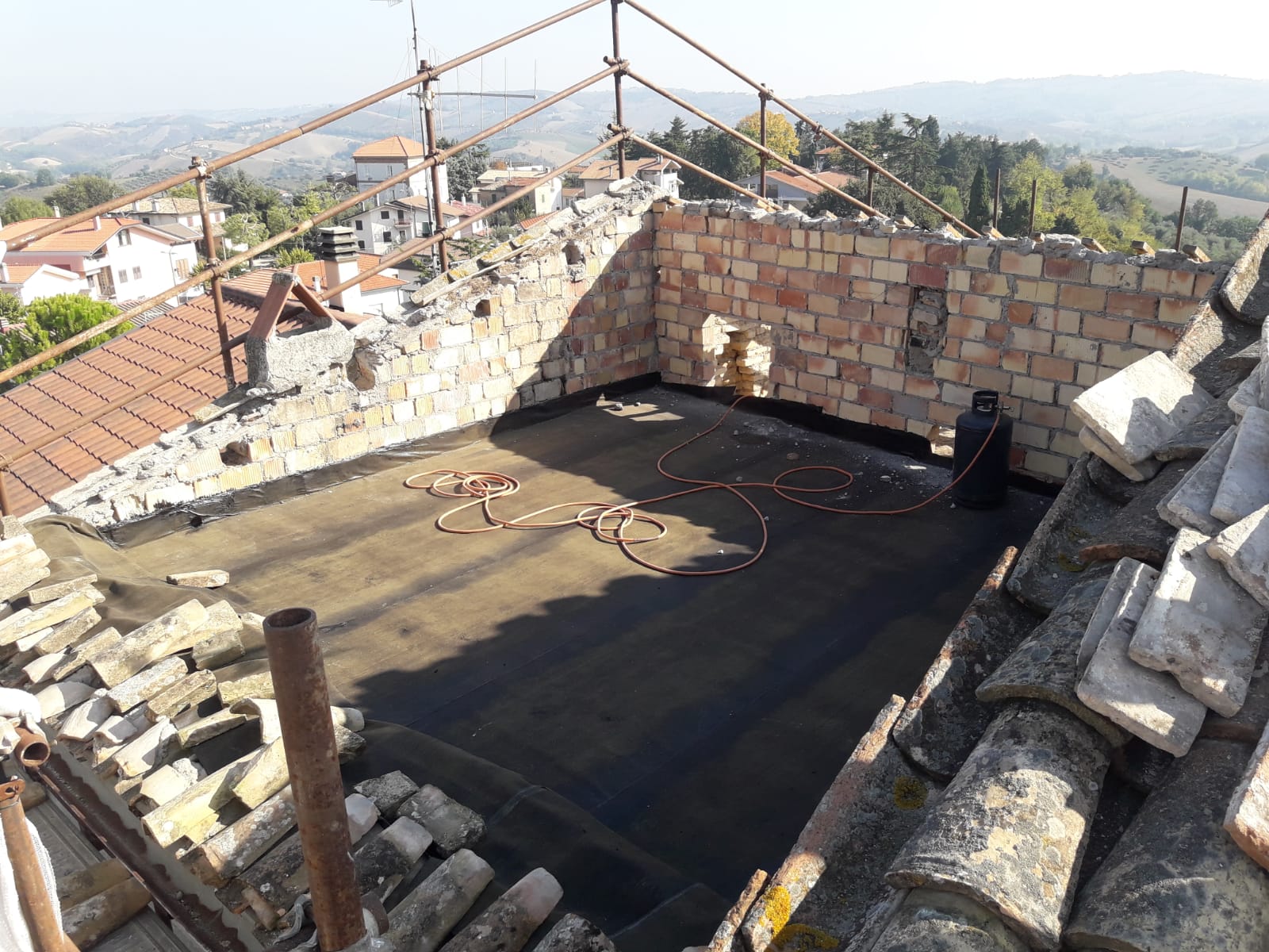 Mit Paolo an unserer Seite haben wir im Mai 2018 endlich die 3 Bauunternehmer gefunden, die unser Haus renovieren wollten. Wir wollten ein Haus mit Zimmern als B&B vermieten. Dann liegt die Messlatte sofort hoch, denn dann muss alles solide und gut sein. So wird es neue Strom- und Wasserleitungen geben, aber auch eine Klimaanlage und als Krönung ein neues Dach.