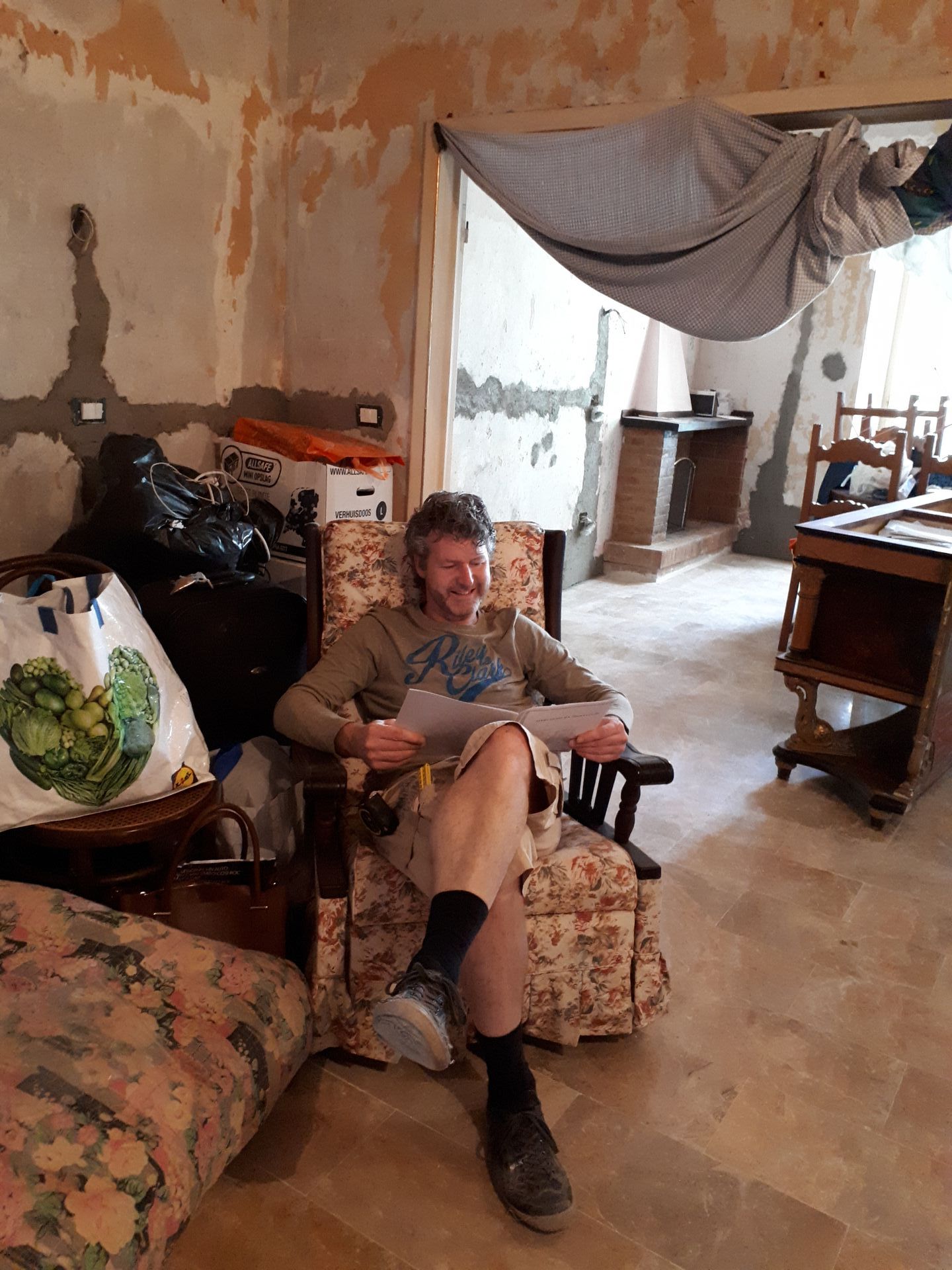 Glücklicherweise hatten wir einen befreundeten Bauunternehmer Rob gebeten, sich unser Haus anzusehen. Er war zufrieden mit dem, was er sah, das Dach musste erneuert werden, aber das Haus würde noch 200 Jahre halten.. Verhandlungen auf Distanz mit einer italienischen Familie werden nicht so schnell gehen, erwarteten wir. Nichts ist weiter von der Wahrheit entfernt. Der Sprecher sprach englisch und wollte das Haus loswerden, also waren wir im November 2017 schon beim Notar. Die Dinge sind etwas anders als in den Niederlanden.... nachdem wir dort mit der ganzen Familie ungefähr 3 Stunden gesessen haben, war der Schlüssel endlich in unserem Besitz. Das musste mit der ganzen italienischen Familie und einem ausgiebigen Mittagessen gefeiert werden.